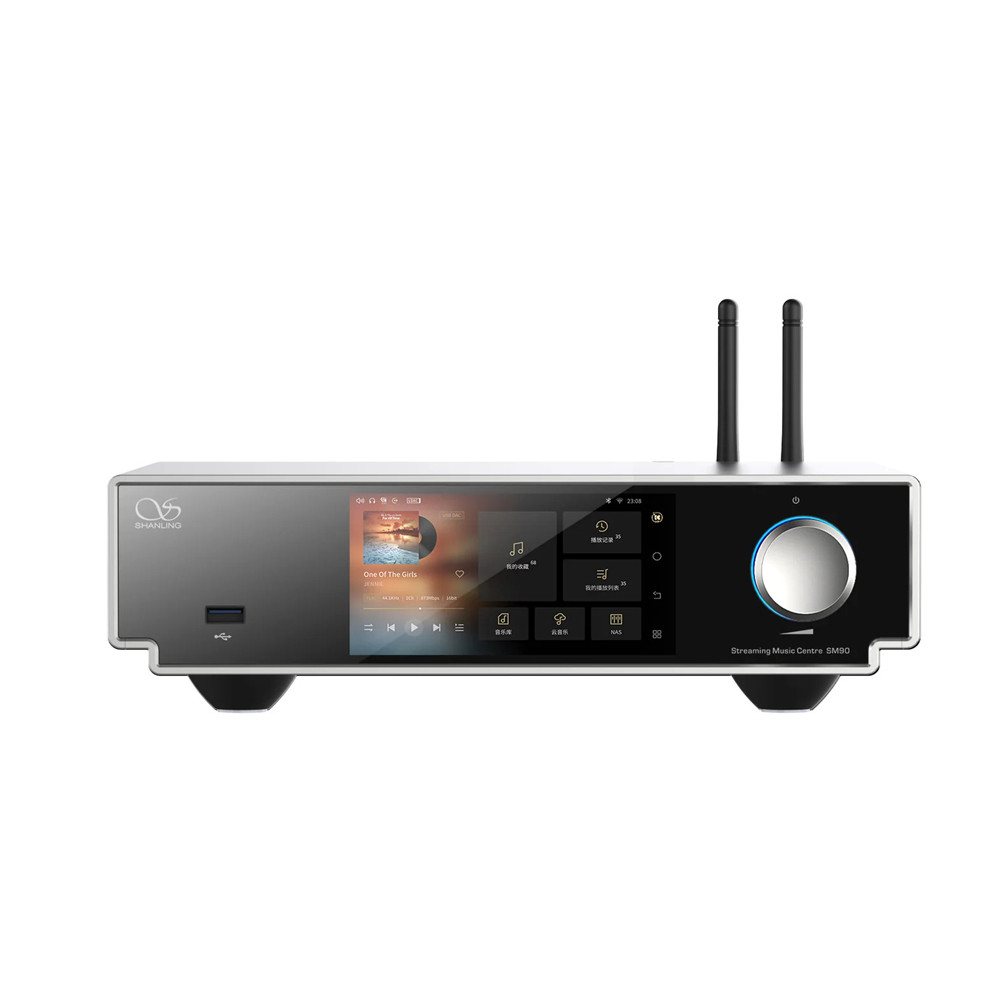 Ideal for audiophiles seeking a versatile hub, the SM90 excels as a streamer, DAC, or digital transport while maintaining Shanling’s refined tuning and reliable closed‑Android experience. Perfect for both streaming services and extensive local music collections. The box includes power cable, USB cable, and Wi‑Fi antennas. The device weighs 3300g.