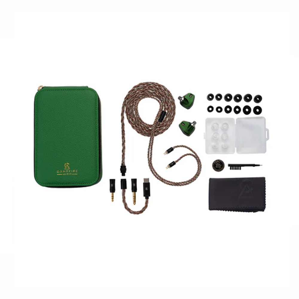 The pinnacle of the legendary Andromeda range, the Andromeda 10 offers a technical expansion in configuration, driver applications and sonic performance. Campfire’s long-standing proprietary tuning technology, TAEC, is a powerful spatial element that extends the technical performance of the Andromeda 10 BA drivers by precisely reflecting and resonating the driver output, creating greater spatial imaging, layering and sonic worlds. Four premium BA drivers work together to reproduce vocals and midrange frequencies with incredible speed, realism and stunning detail. Combined with careful acoustic spatial design, the midrange frequencies are placed in perfect relative positions, taking the classic sound of the Andromeda to a new level. Power, precision, punch. Four large, low-frequency, BA drivers work together to skillfully create tight and precise bass, while achieving deep tones and providing satisfying emphasis. The cohesion of the Andromeda 10 drivers is aided by a vintage ceramic film capacitor, specifically selected for its compatibility and synergy with the Andromeda 10’s internal architecture. This specialized component helps to seamlessly align the driver units across the frequency range, and elevate and unify the sonic presentation. The Andromeda 10 is Campfire’s first IEM system to utilize standard 2-pin connectors, improving cross-compatibility and ease of use across a wide range of products. The Time Link cable uses six conductors, each individually enameled, made from a blend of silver-plated copper and pure copper, for balanced sound, high-quality detail and resolution. 3.5mm conventional, 4.4mm balanced or a high-quality USB-C DAC connectors provide maximum flexibility.