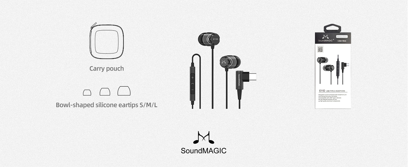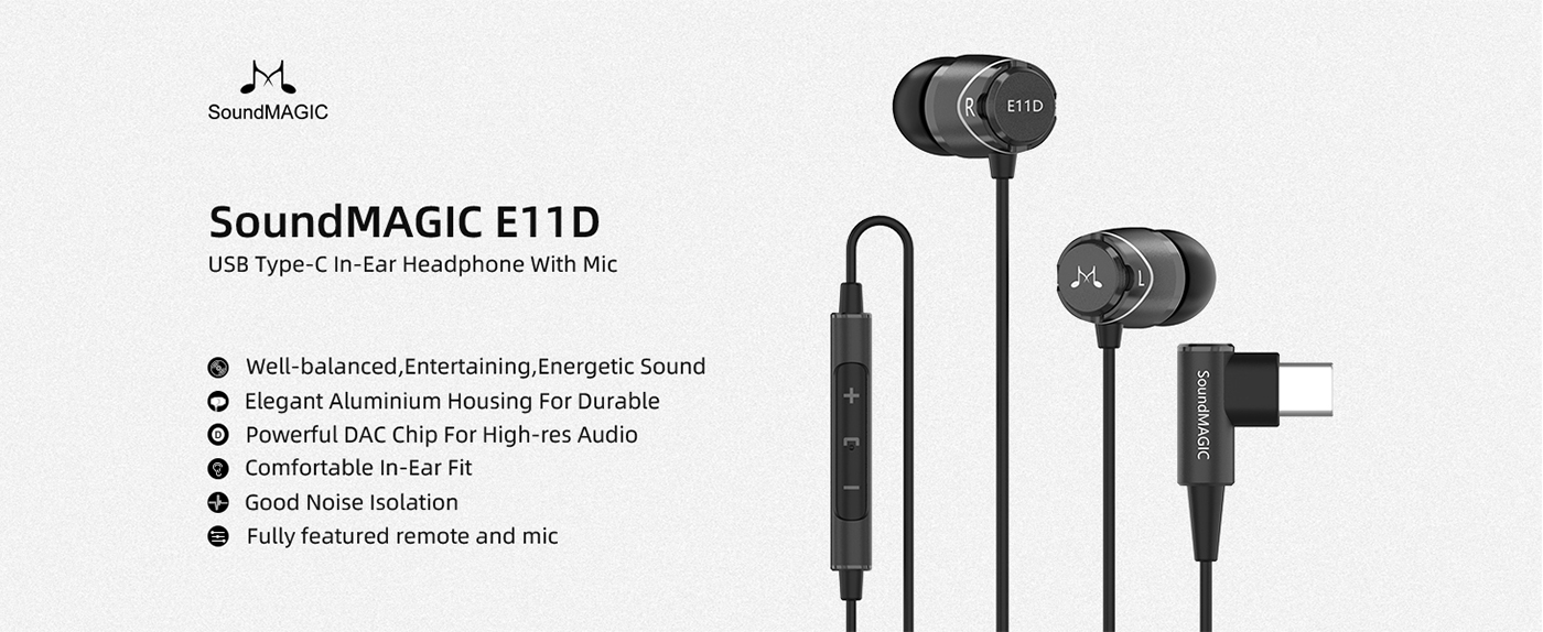 SOUNDMAGIC E11D - Stereo Type-C connector 24Bit DAC digital In-Ear headphones with Mic. - Gunmetal