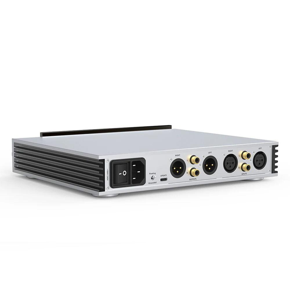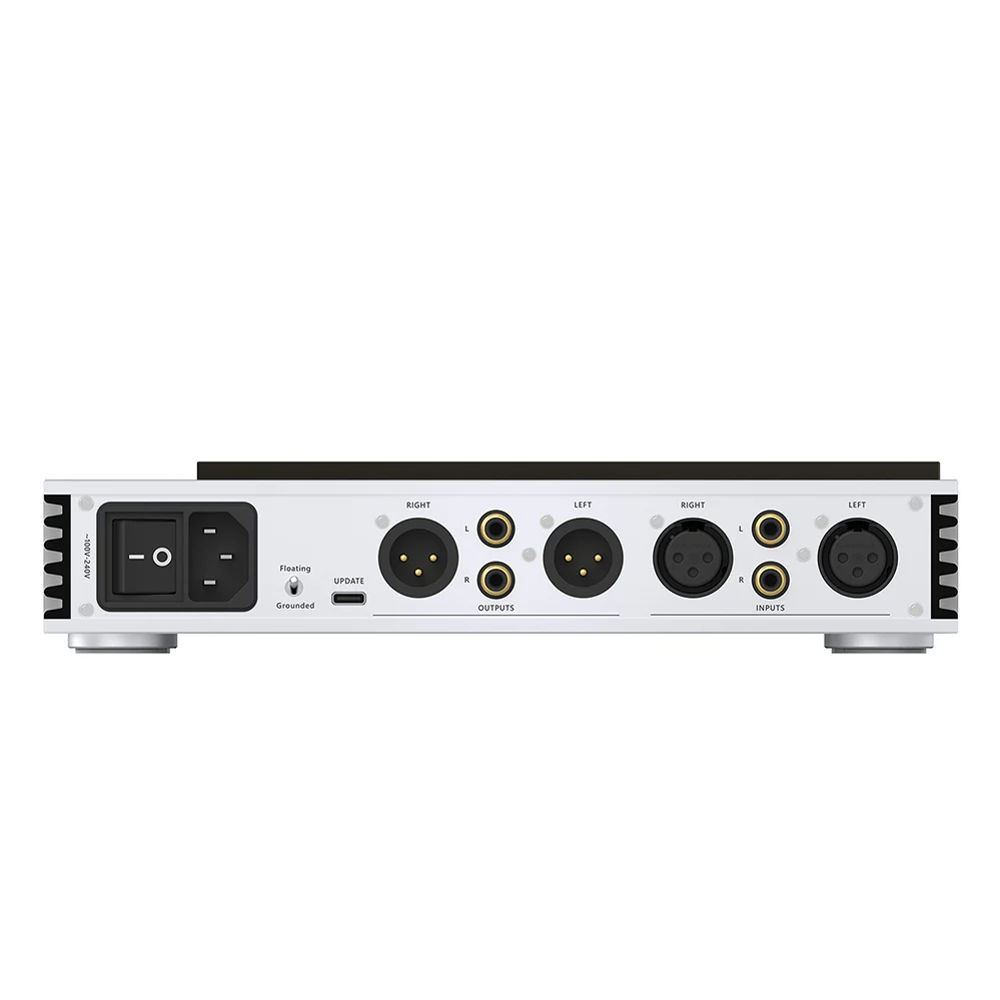 Each channel features 40 low-noise op-amps, totaling 80 in a parallel configuration, resulting in exceptionally low distortion (THD+N: 0.00006%) and an impressive 137 dB signal-to-noise ratio. Output power reaches up to 11.5 watts at 16 ohms, while the three-step gain control enables precise matching with various headphones.