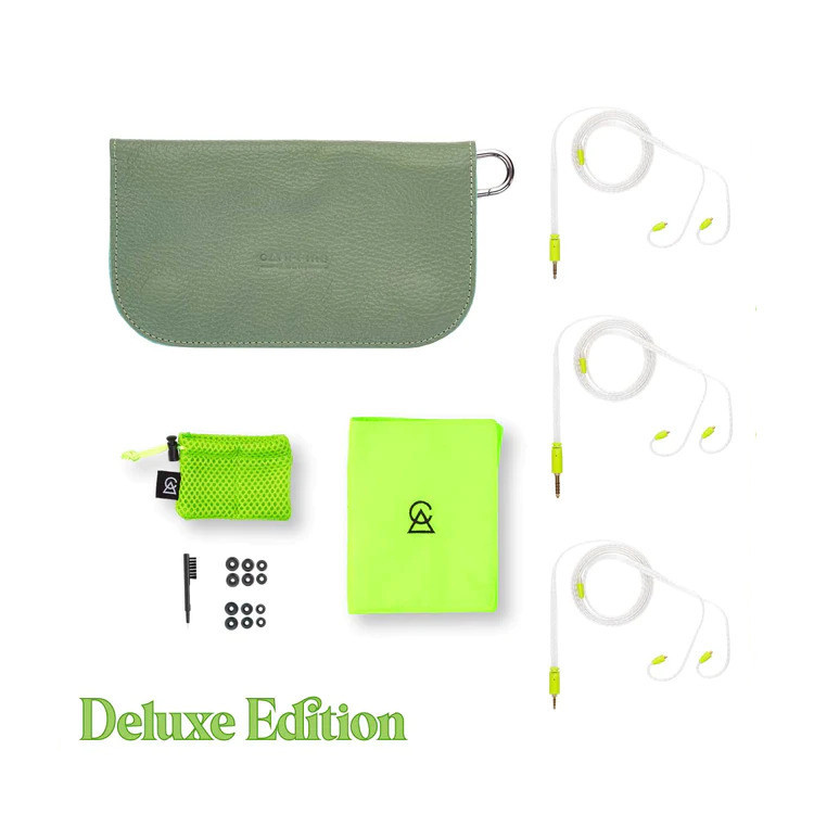 Căștile negre sau verzi vin într-un pachet all-in-one Essential, cu un cablu Time Stream de 3,5mm sau 4,4mm. Conceput pentru cunoscătorii de ascultare premium, pachetul Deluxe vine cu cabluri Time Stream de 2,5mm, 3,5mm și 4,4mm și carcase de înaltă calitate. În cadrul ambalajelor, culoarea fiecărui accesoriu corespunde culorii căștilor selectate.